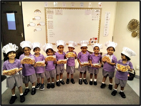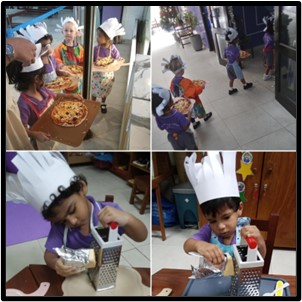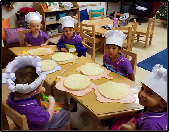 The children in Playgroup had a great time participating in a hands-on pizza baking activity this week. They enthusiastically participated in each stage of the process and chose olives and cheese for the toppings.