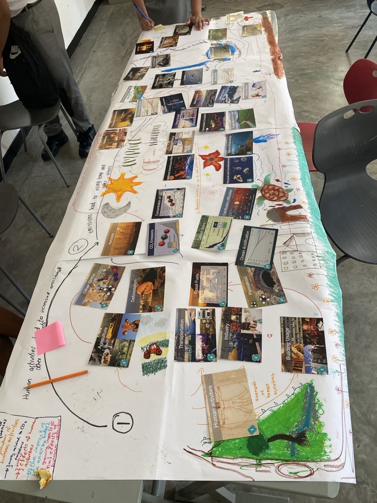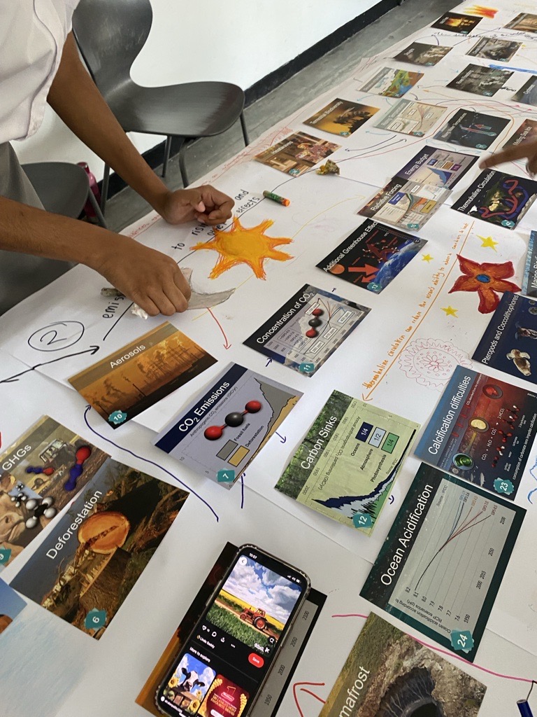 During the session, students worked together in groups to create visual representations of climate change concepts, making the learning process both dynamic and engaging. The activity encouraged critical thinking, teamwork, and problem-solving, helping students see the bigger picture of climate change and its impact on our planet.